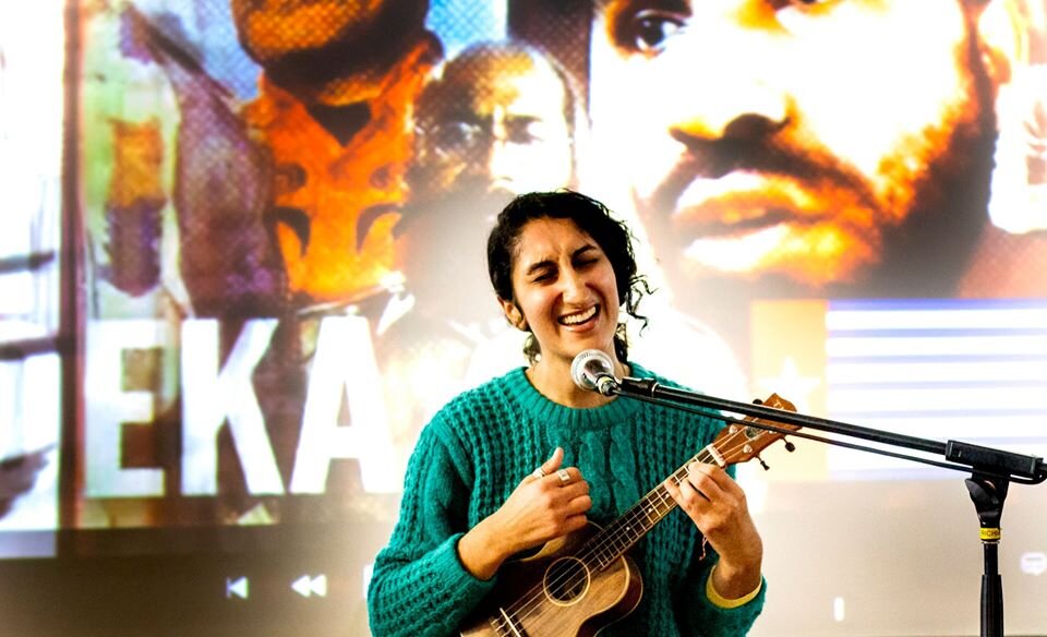 it was a fabulous day of Art, Music, Poetry, Projections, Food, Drink, Market Stalls, Workshops and much more in Solidarity with the community on Manus Island. this project involved planning, development and delivery of the event including curation of the art exhibition and workshop space, workshop programming and hosting an art auction, booking performers, and market stalls and overseeing the running of the event on the day.