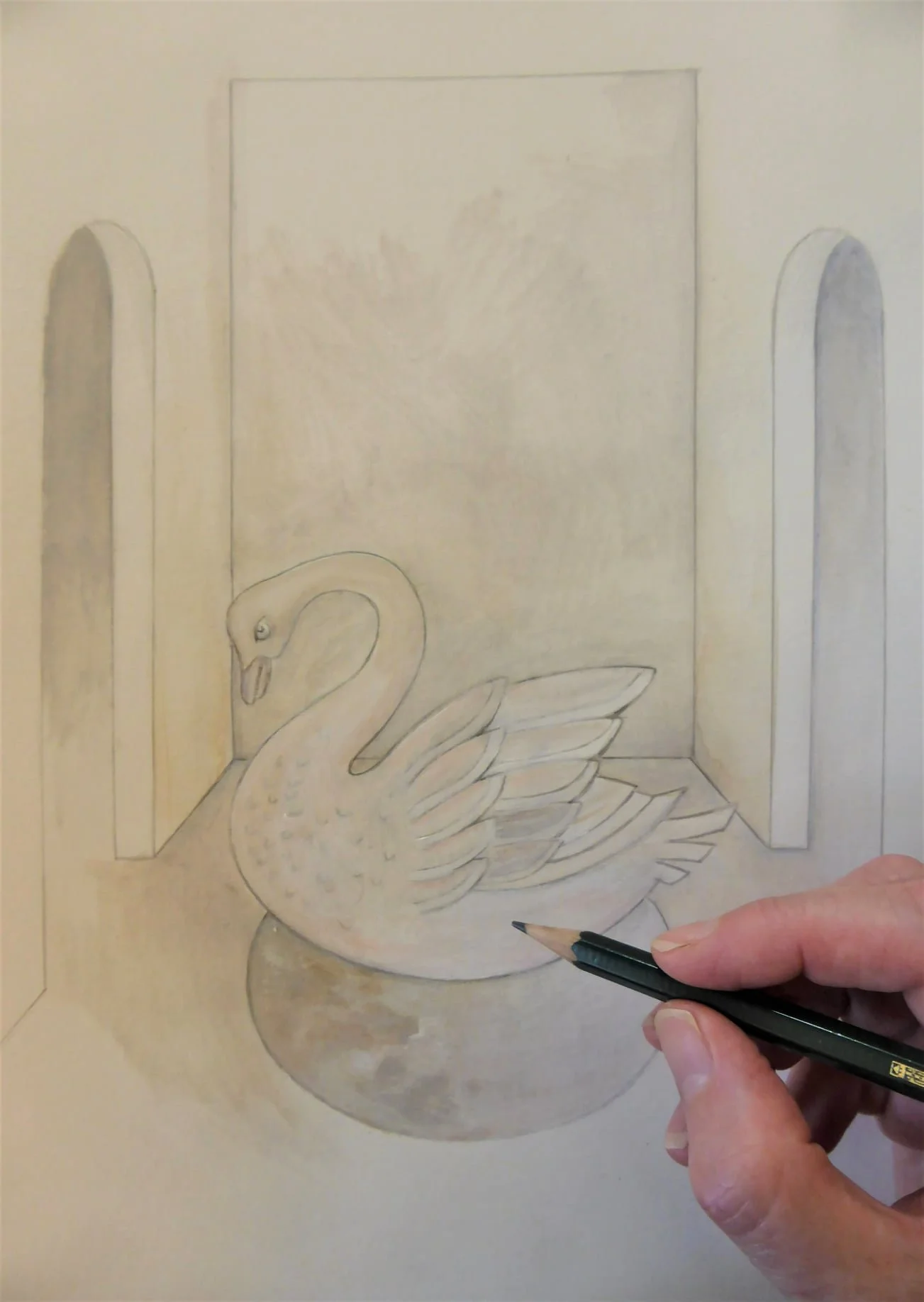 Mixed-media: Pencil, Watercolour, Ink and wash, Silver paint pen